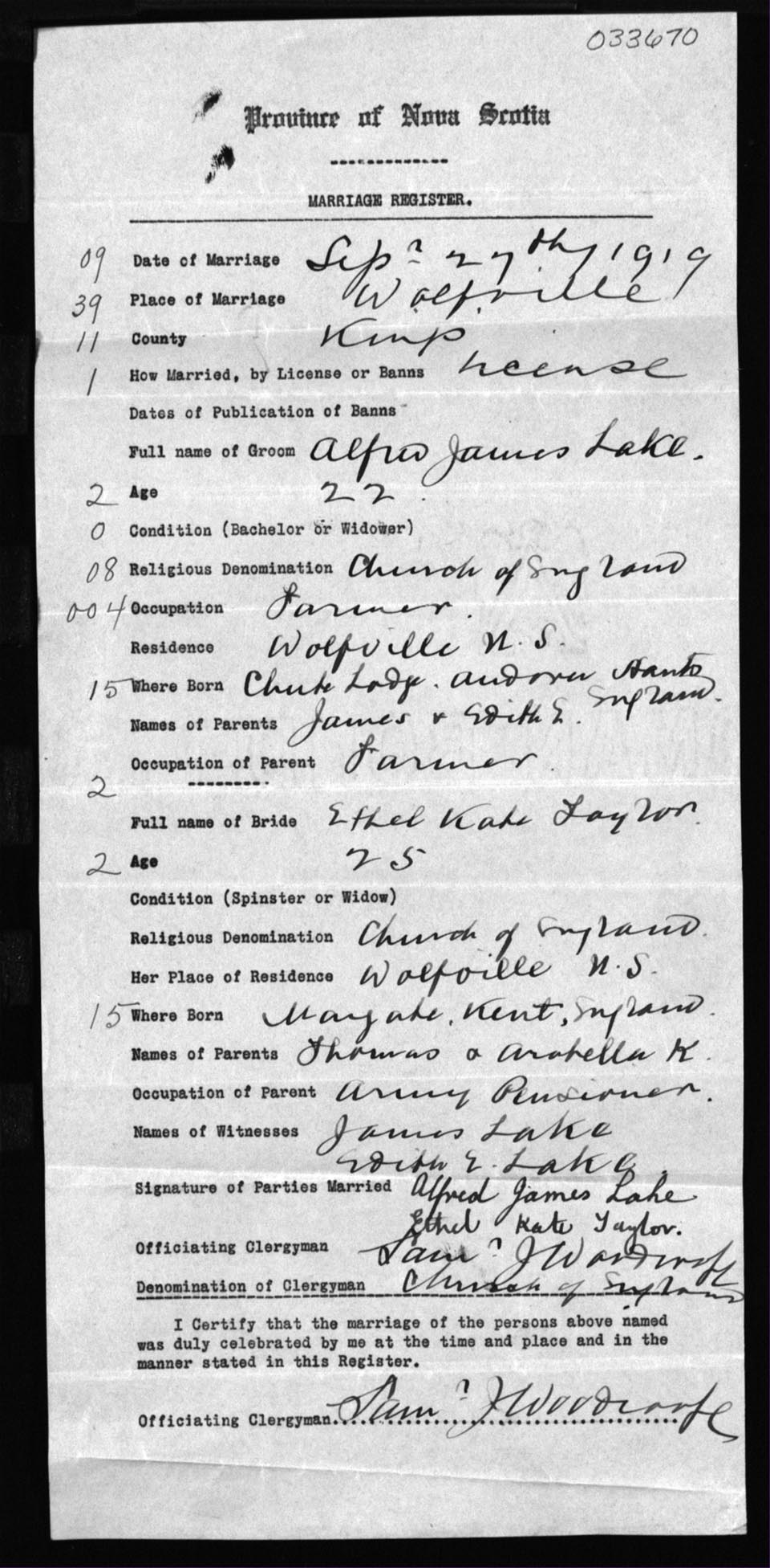 Registration: Year: 1919 number: 33670