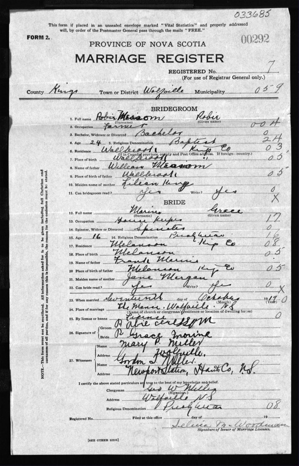 Registration: Year: 1919 number: 33685