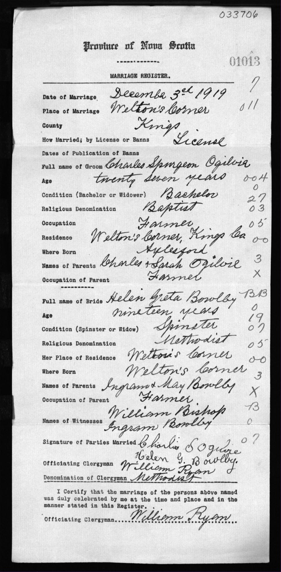 Registration: Year: 1919 number: 33706