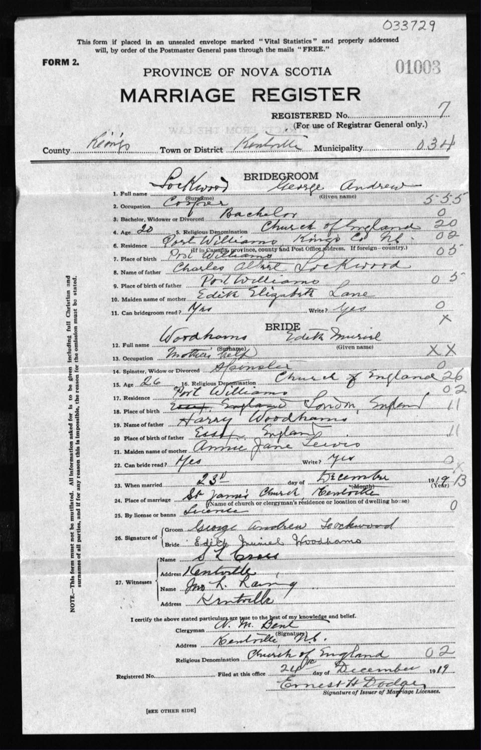 Registration: Year: 1919 number: 33729