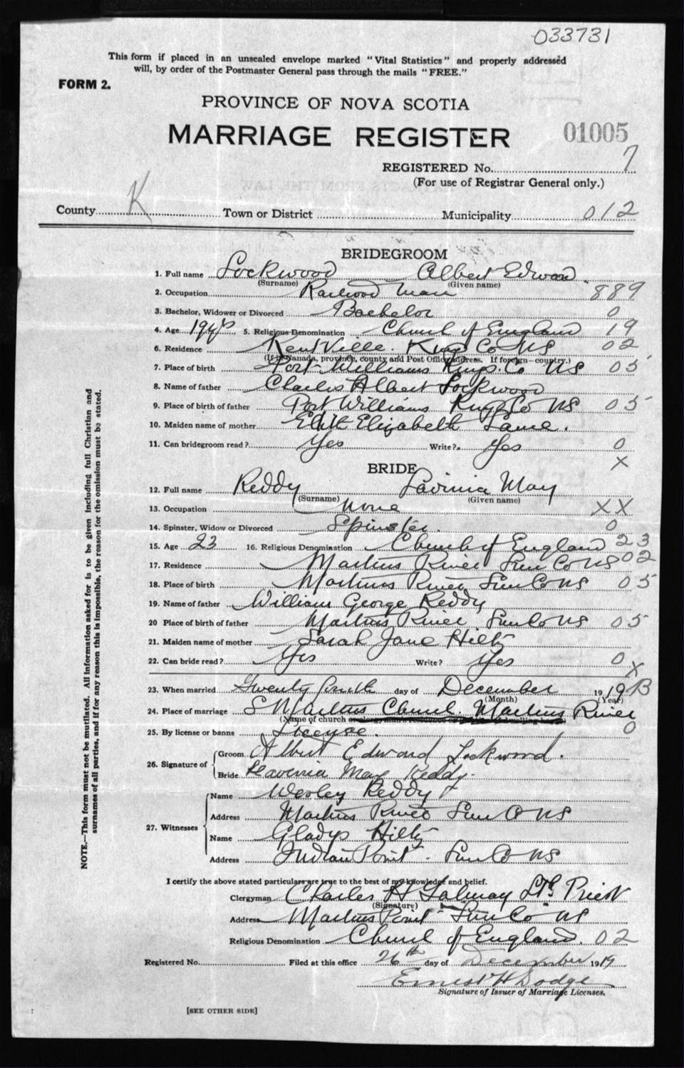 Registration: Year: 1919 number: 33731