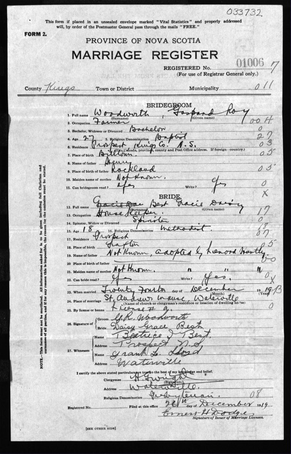 Registration: Year: 1919 number: 33732