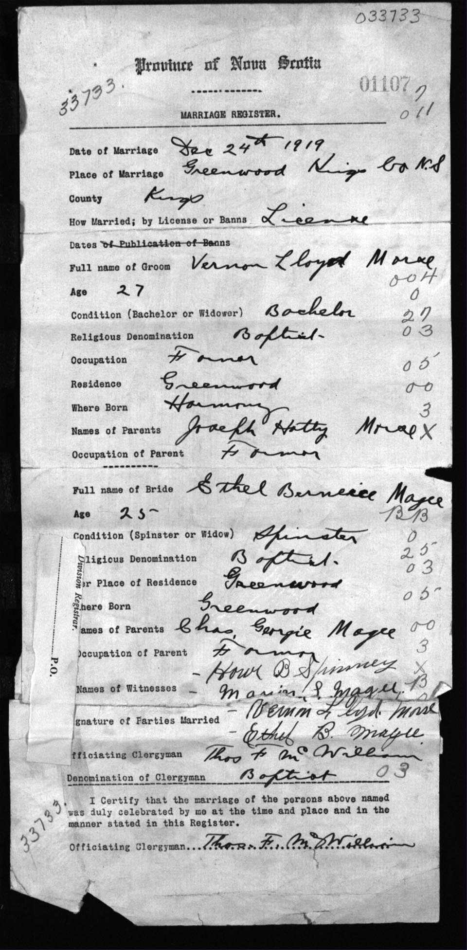 Registration: Year: 1919 number: 33733