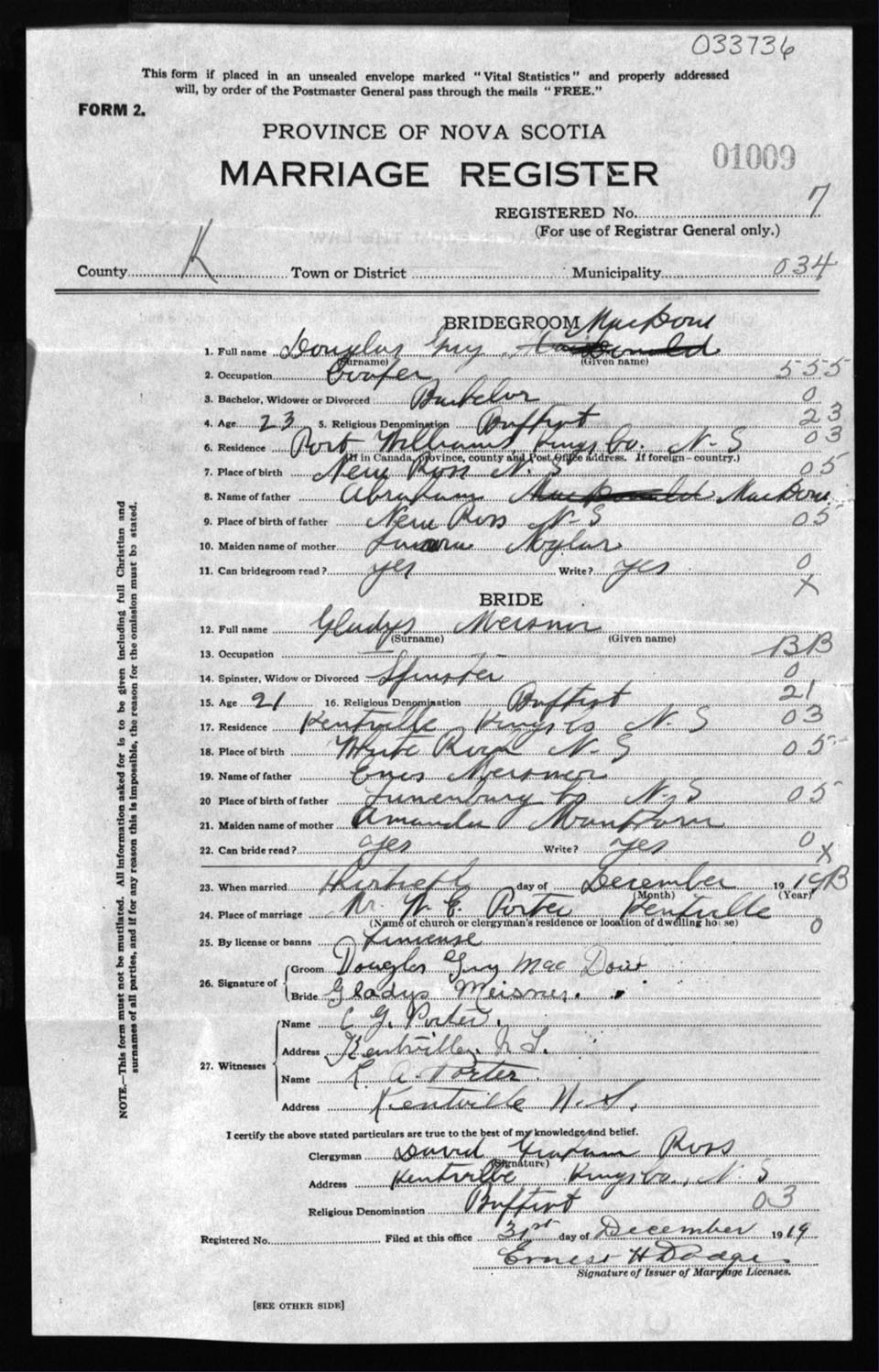 Registration: Year: 1919 number: 33736
