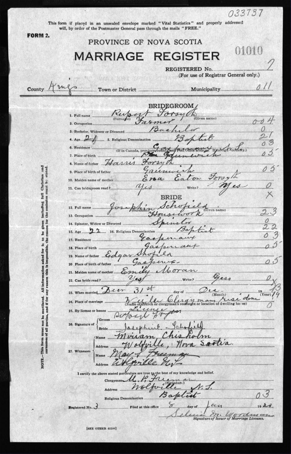 Registration: Year: 1919 number: 33737
