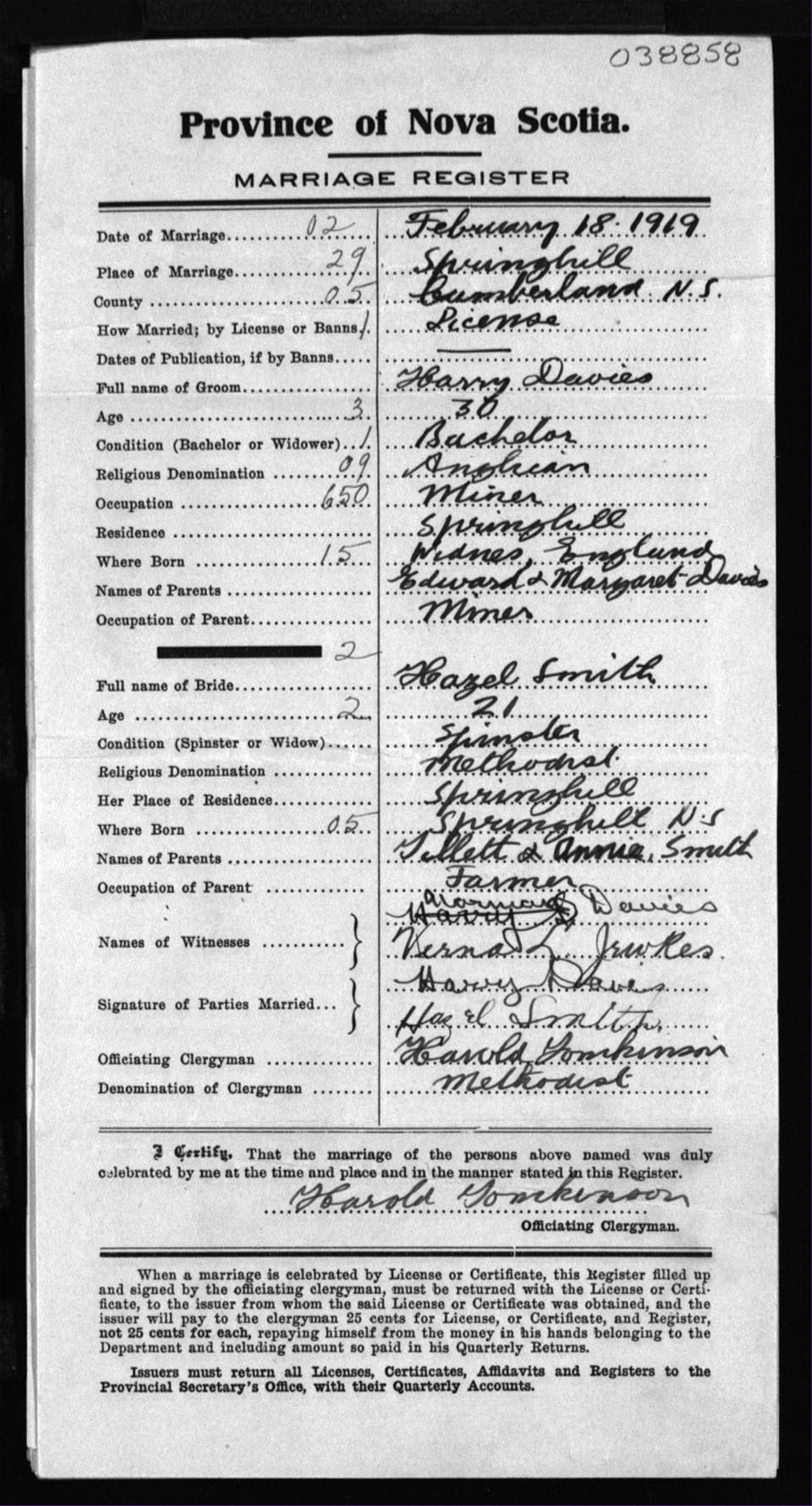 Registration: Year: 1919 number: 38858