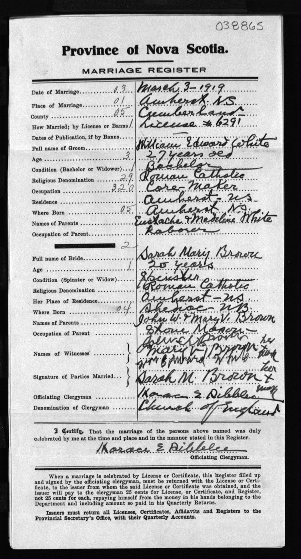 Registration: Year: 1919 number: 38865