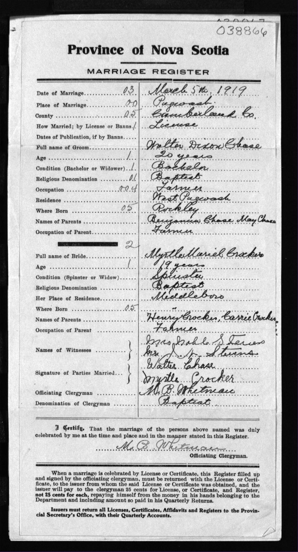 Registration: Year: 1919 number: 38866