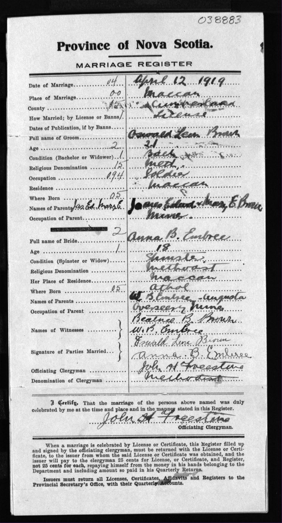 Registration: Year: 1919 number: 38883