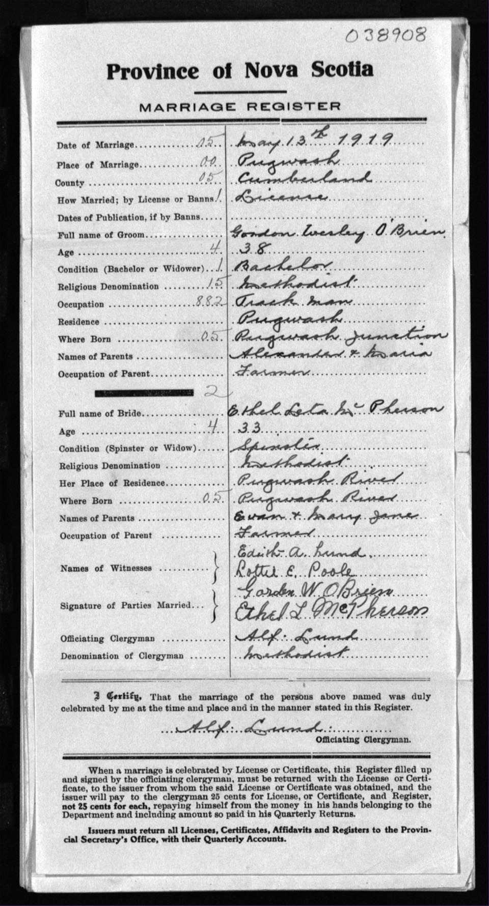 Registration: Year: 1919 number: 38908