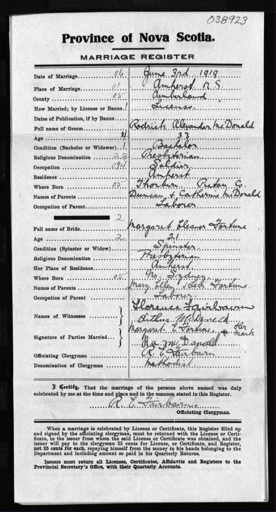 Registration: Year: 1919 number: 38923