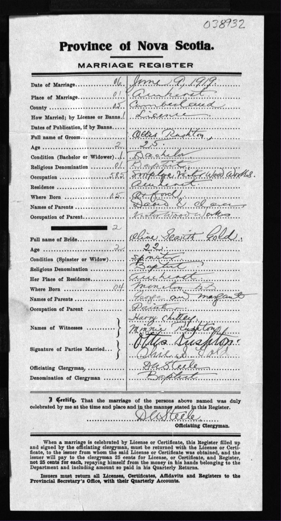 Registration: Year: 1919 number: 38932