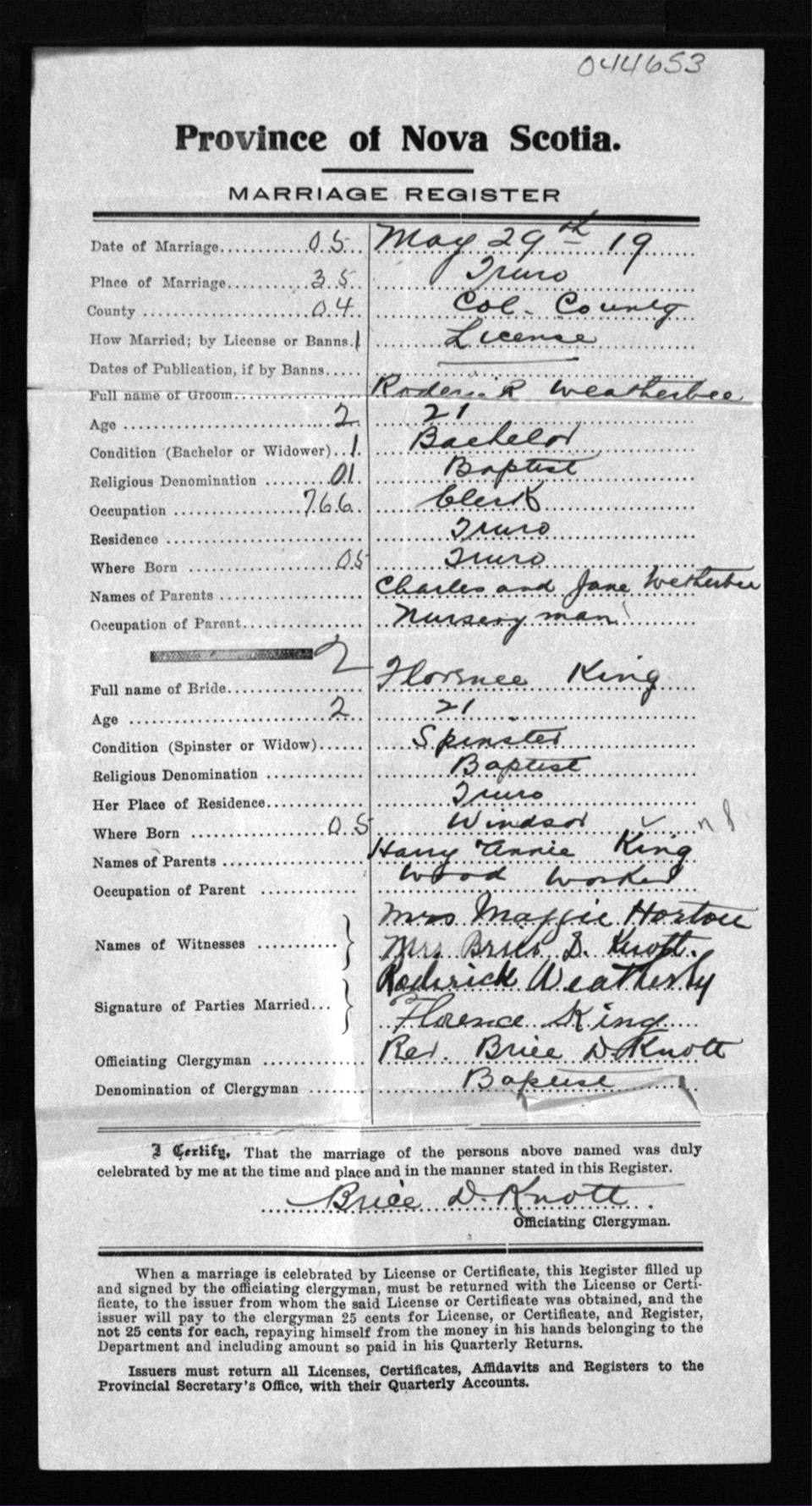 Registration: Year: 1919 number: 44653