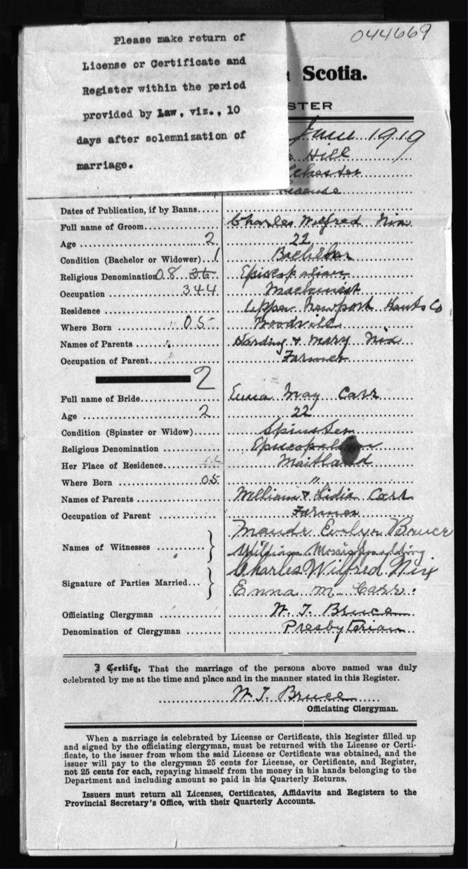Registration: Year: 1919 number: 44669