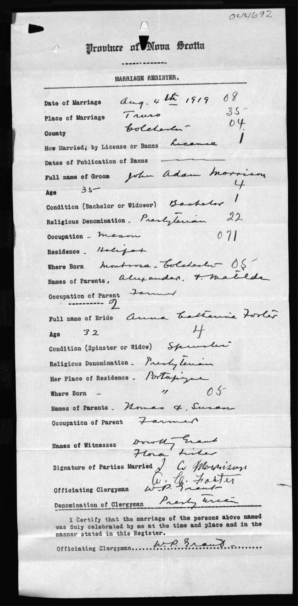 Registration: Year: 1919 number: 44692