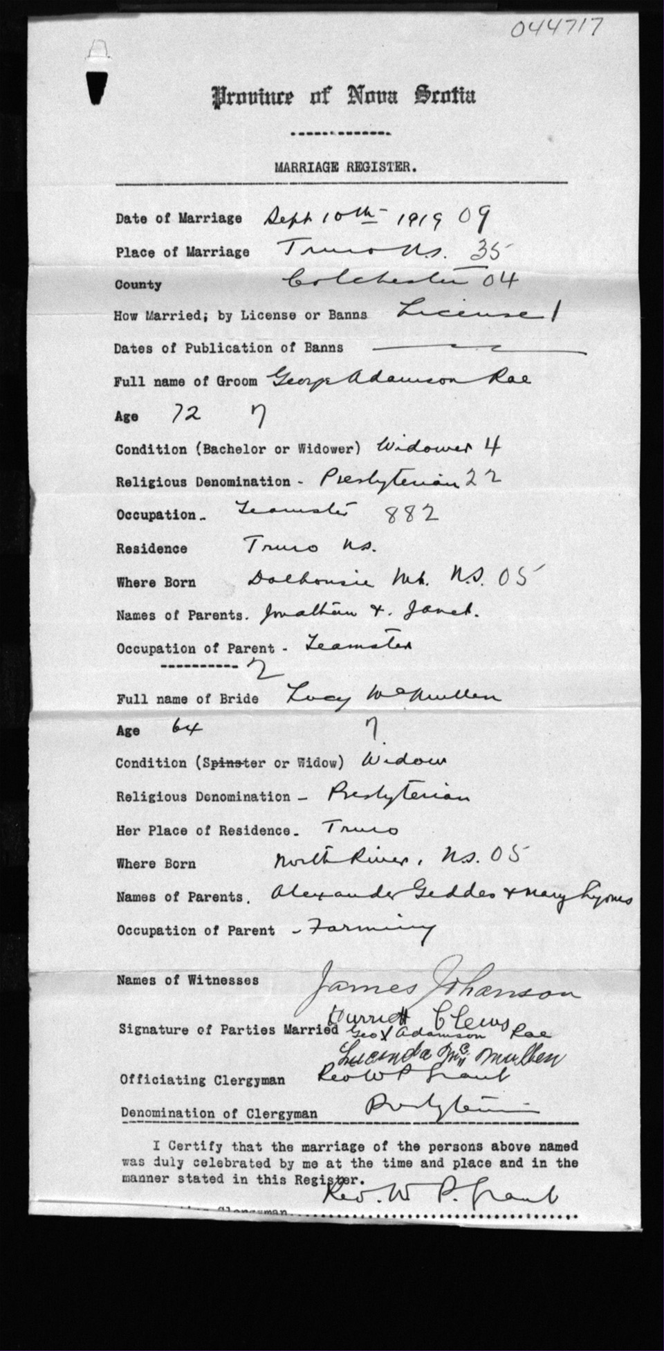 Registration: Year: 1919 number: 44717