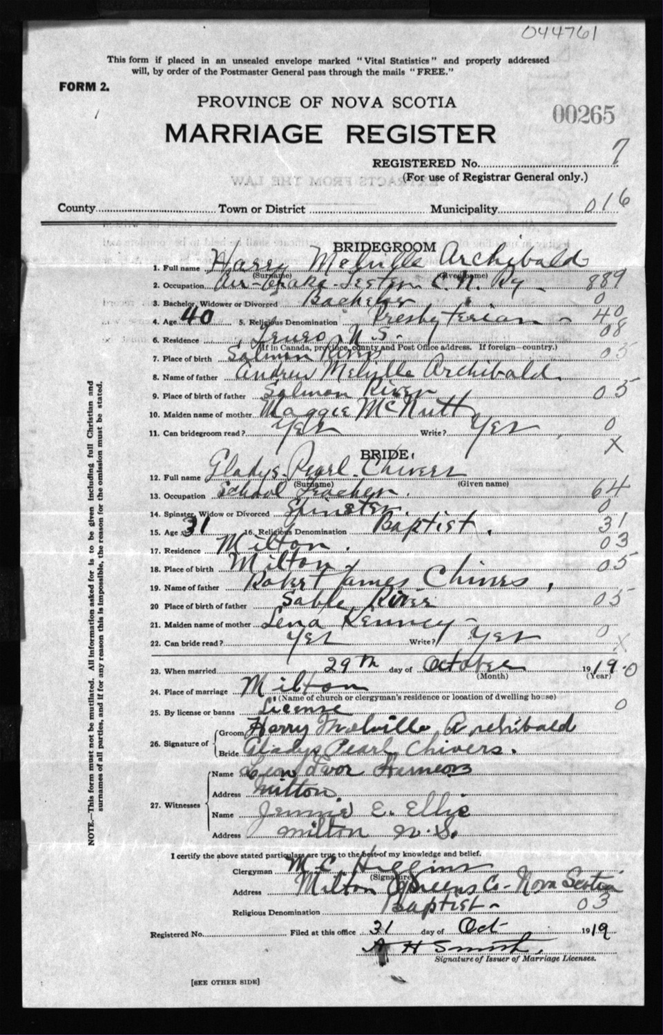 Registration: Year: 1919 number: 44761