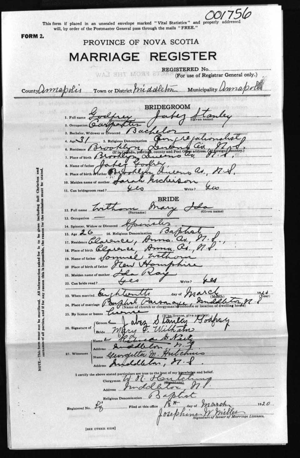 Registration: Year: 1920 number: 1756