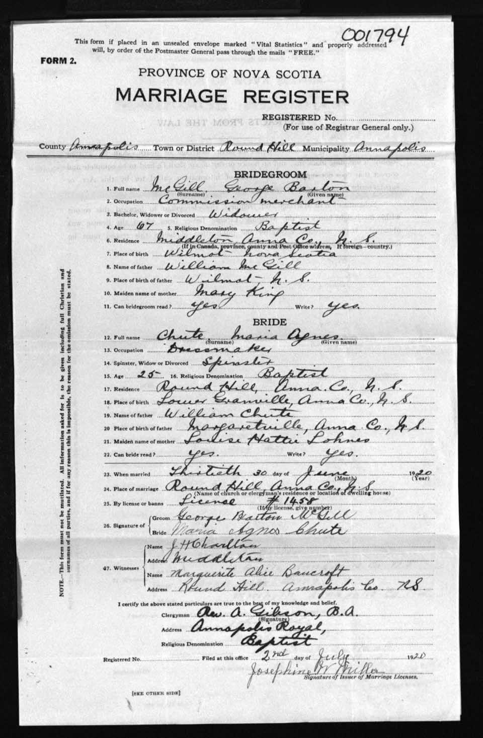 Registration: Year: 1920 number: 1794