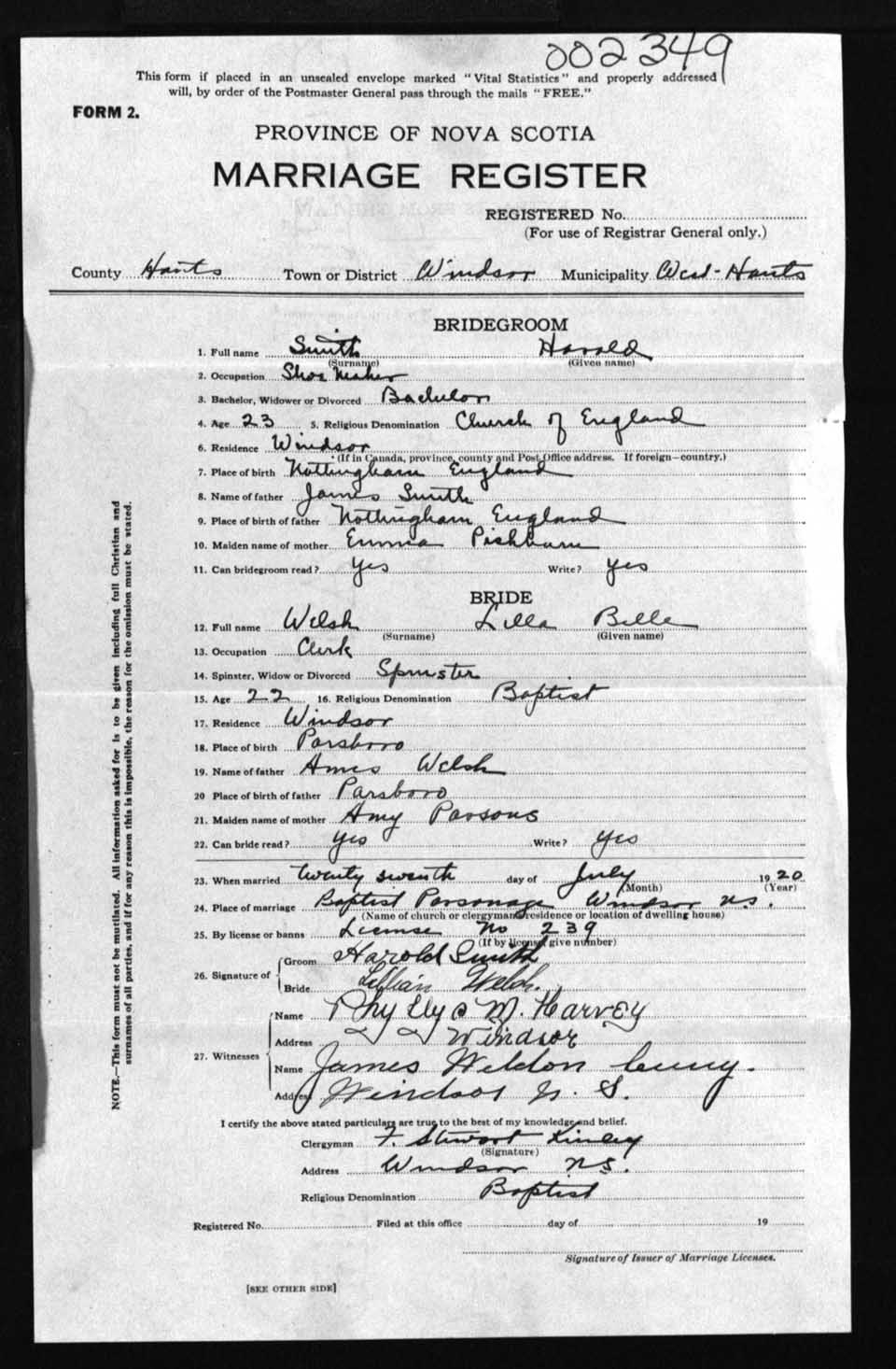 Registration: Year: 1920 number: 2349