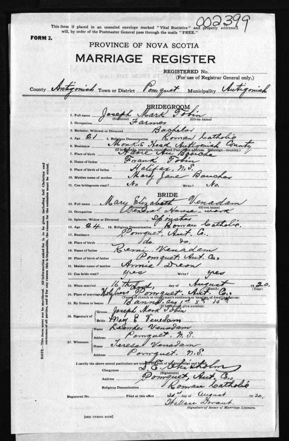 Registration: Year: 1920 number: 2399