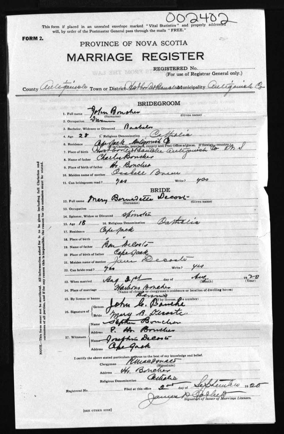 Registration: Year: 1920 number: 2402