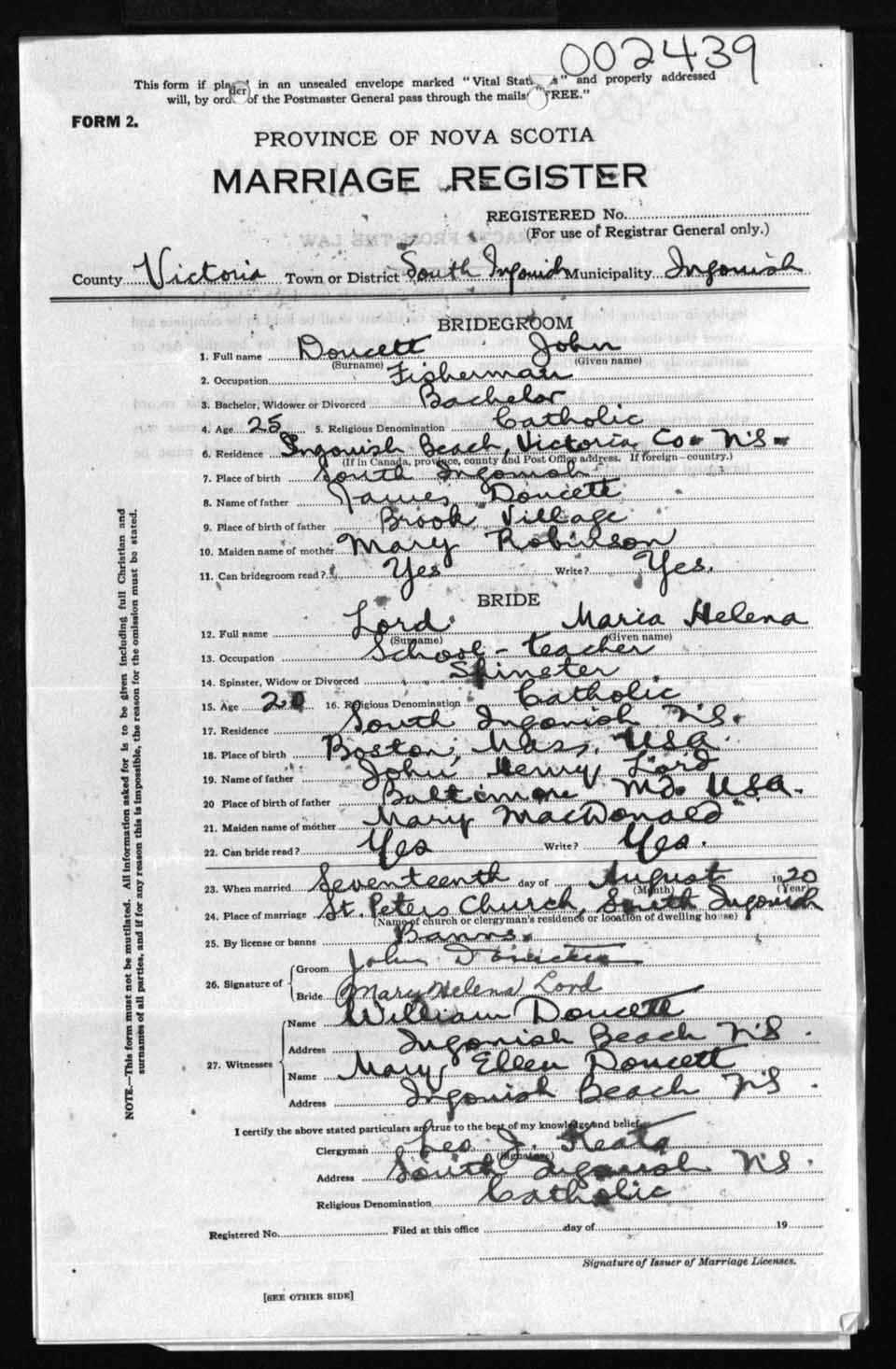 Registration: Year: 1920 number: 2439