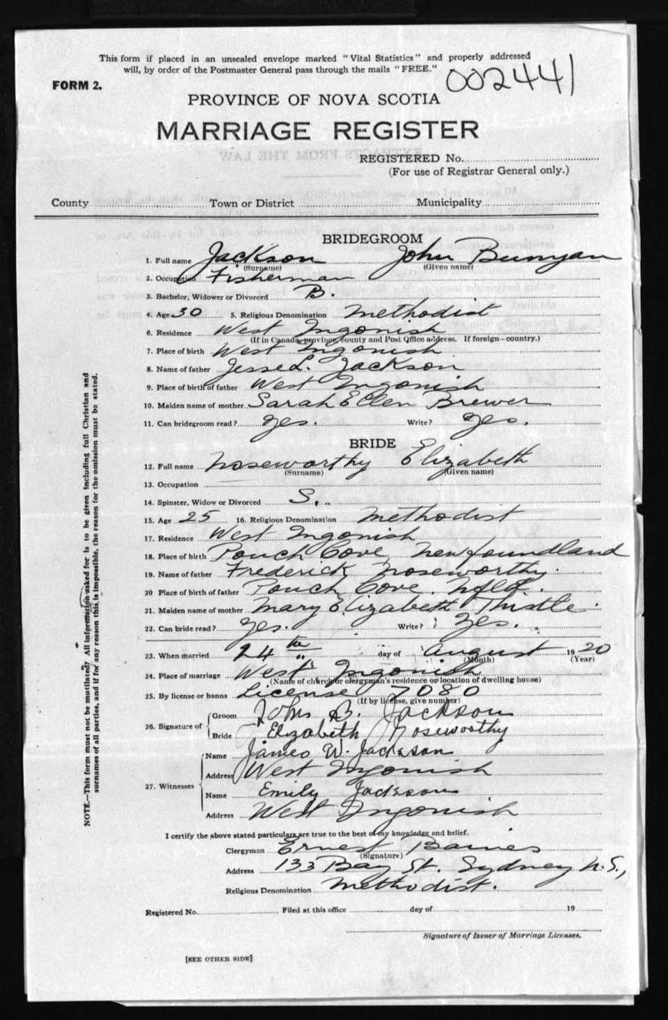 Registration: Year: 1920 number: 2441