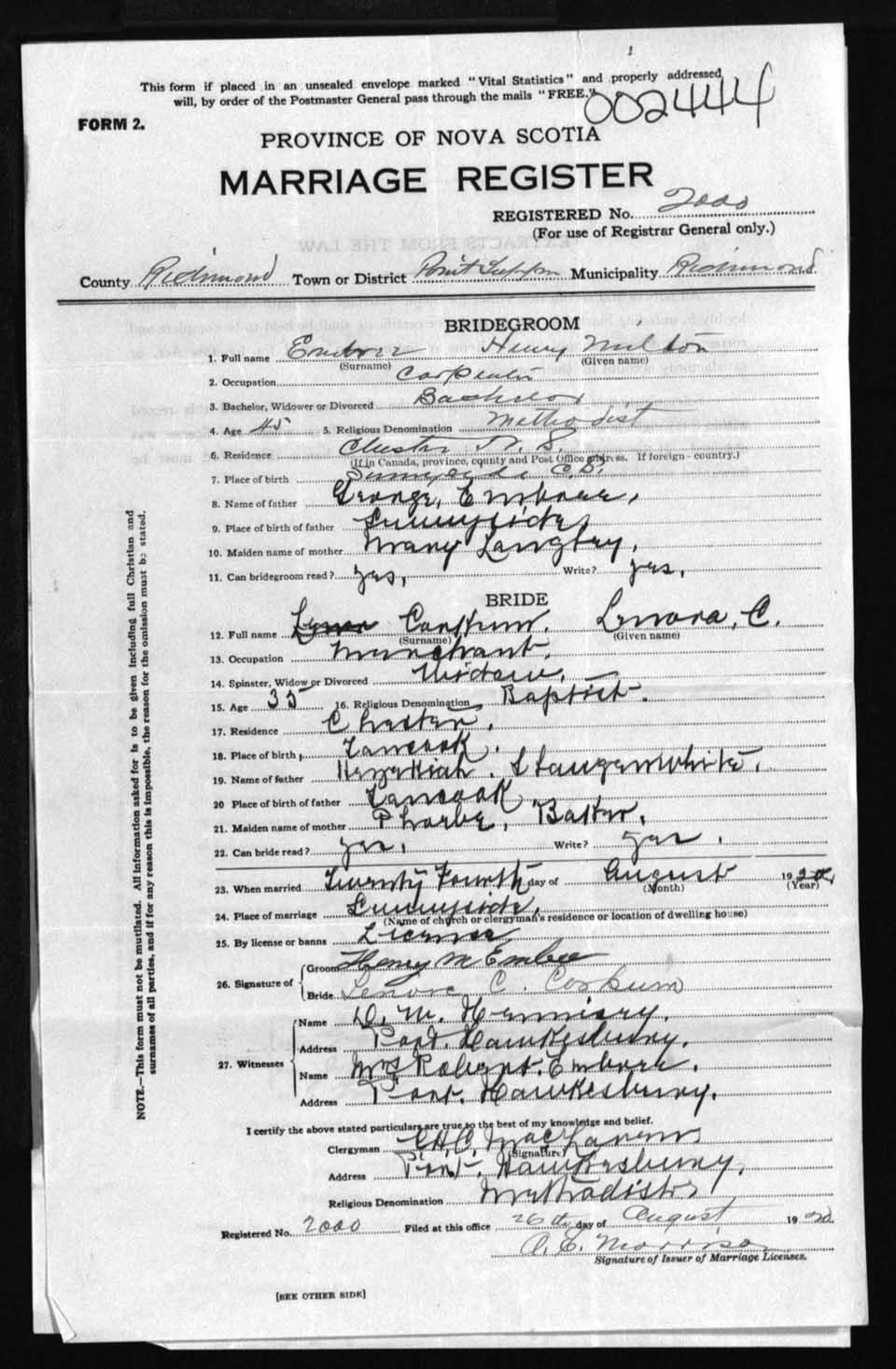 Registration: Year: 1920 number: 2444