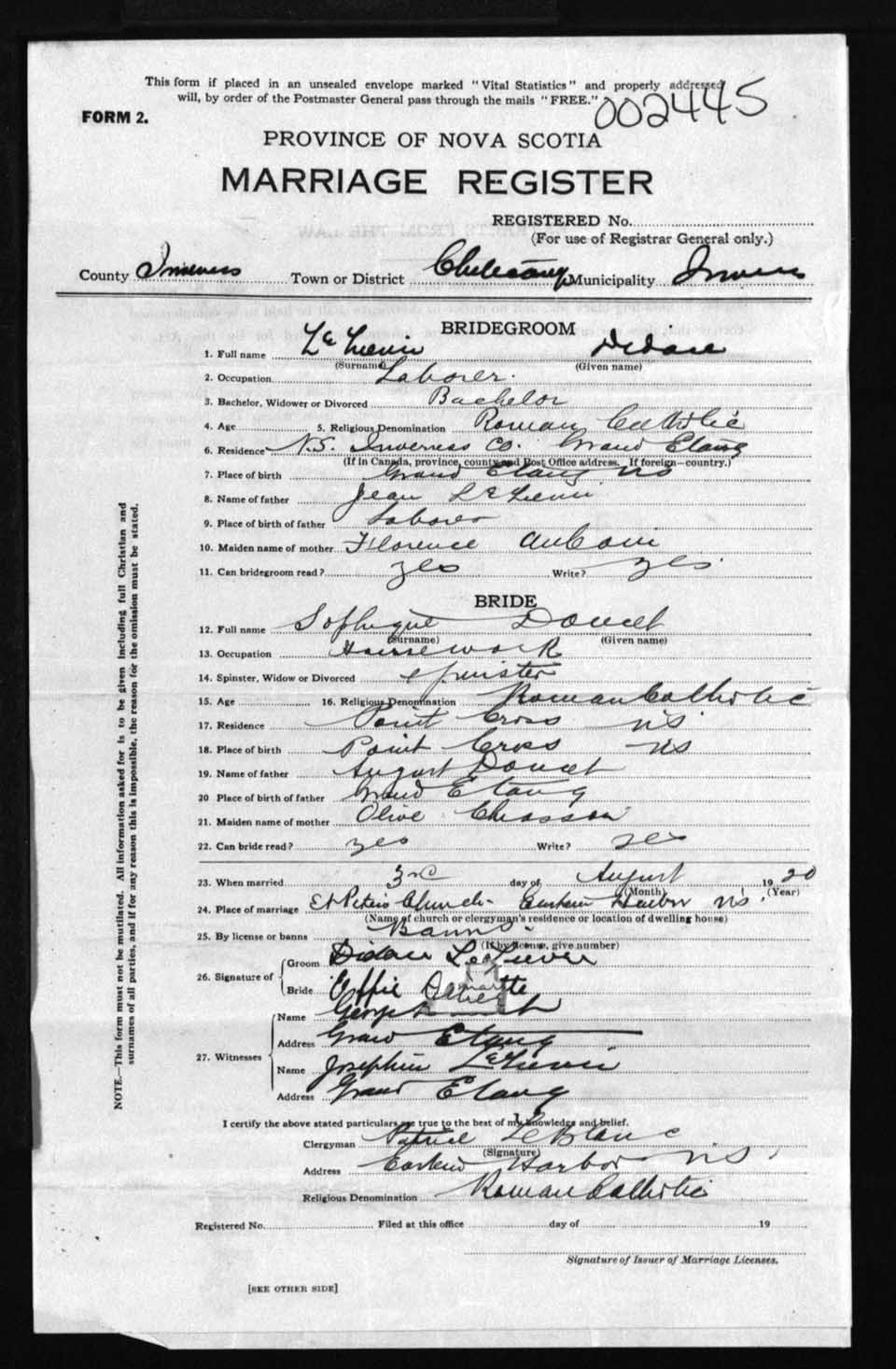 Registration: Year: 1920 number: 2445