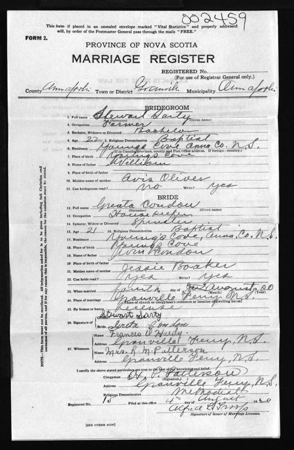 Registration: Year: 1920 number: 2459