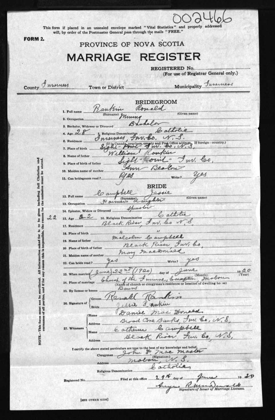 Registration: Year: 1920 number: 2466