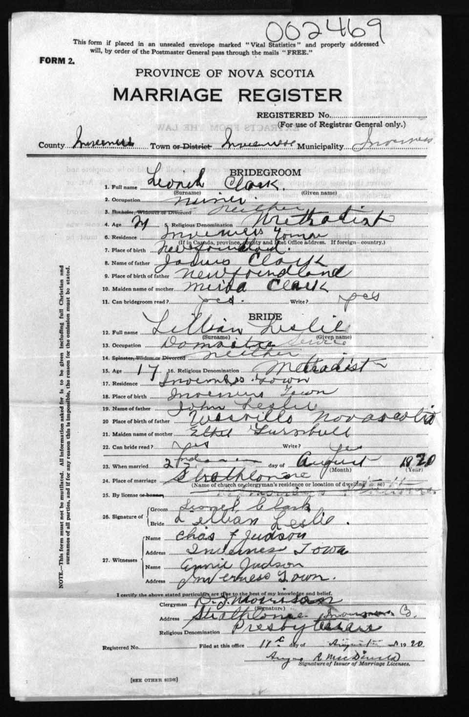 Registration: Year: 1920 number: 2469