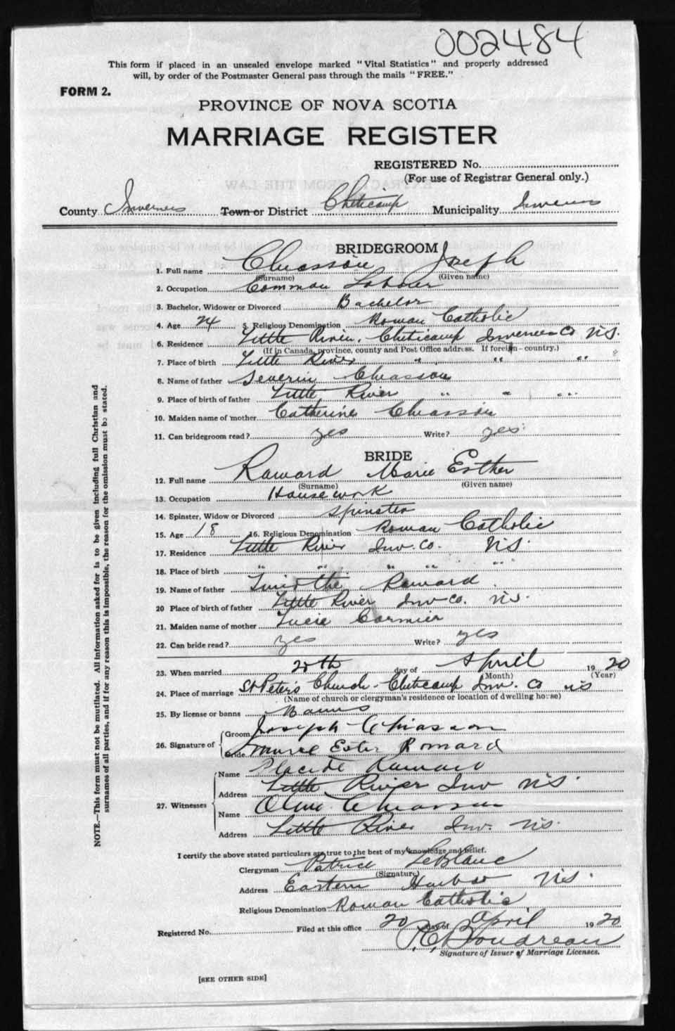 Registration: Year: 1920 number: 2484