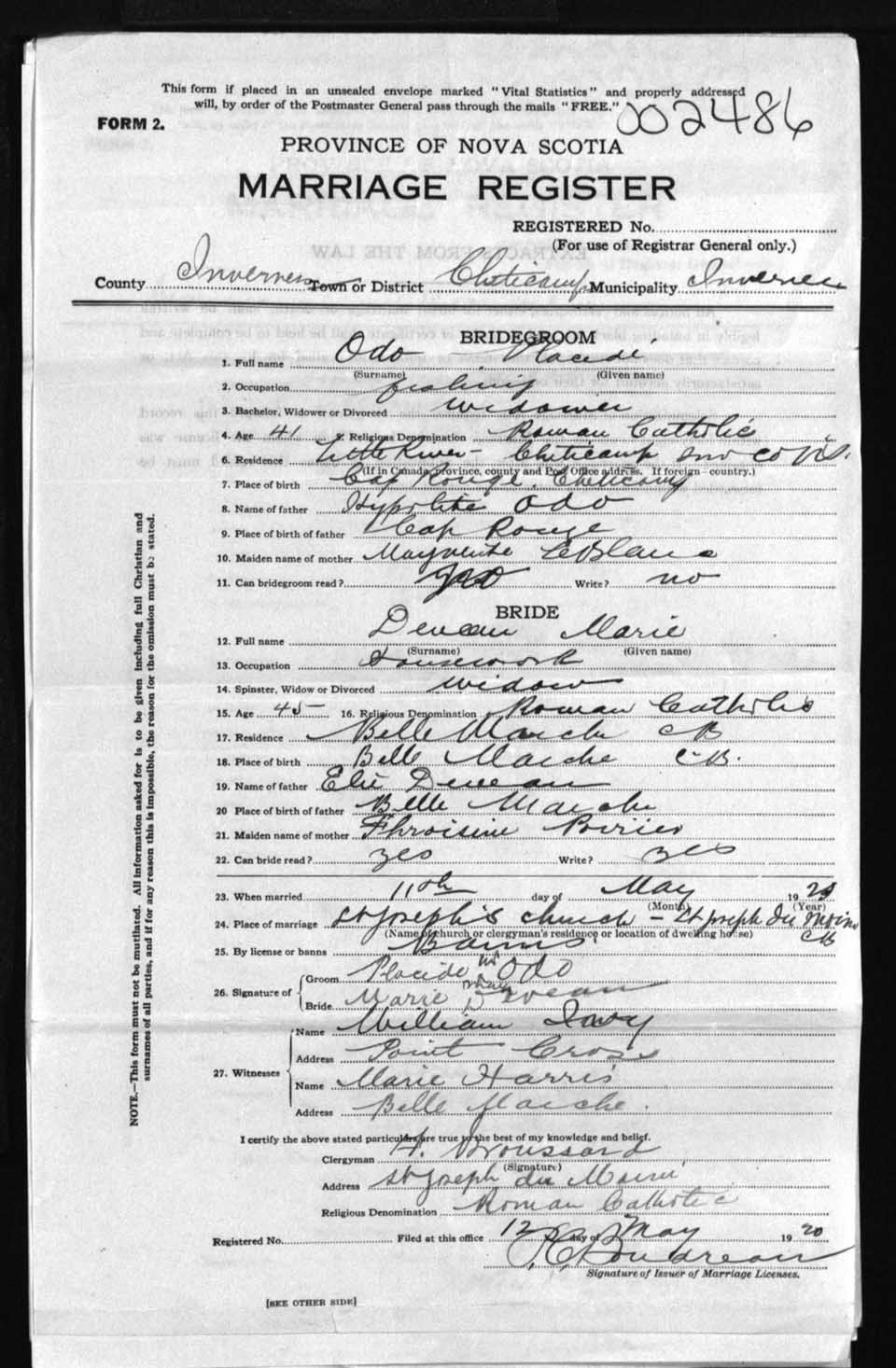 Registration: Year: 1920 number: 2486