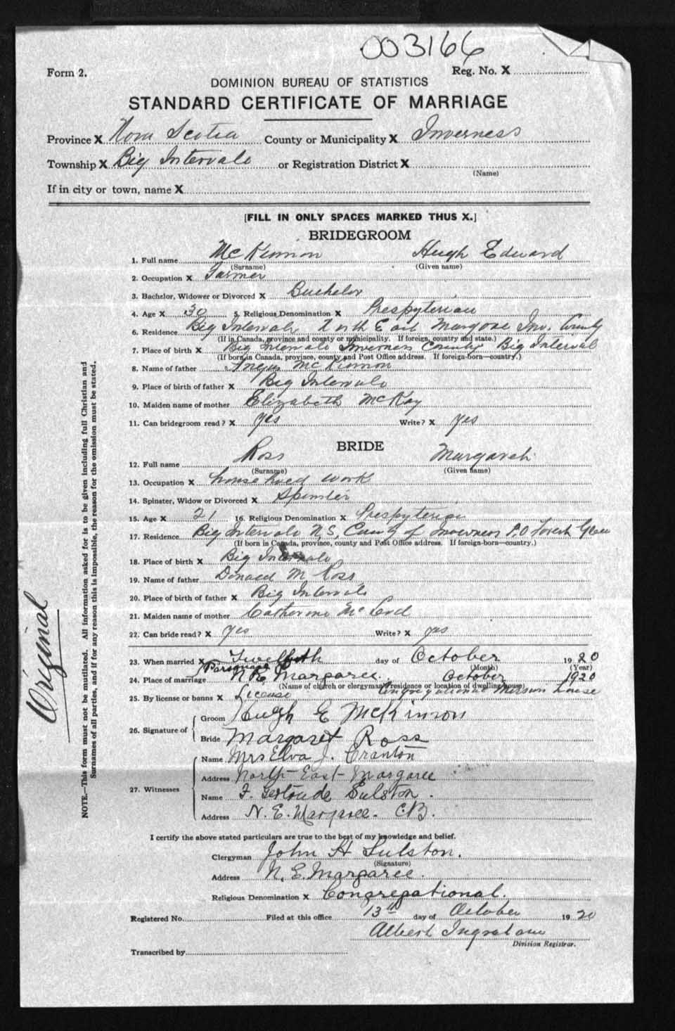 Registration: Year: 1920 number: 3166