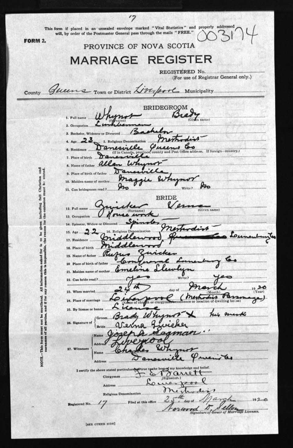 Registration: Year: 1920 number: 3174