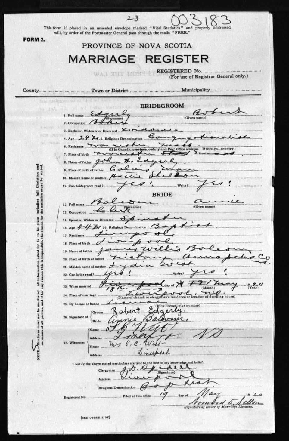 Registration: Year: 1920 number: 3183