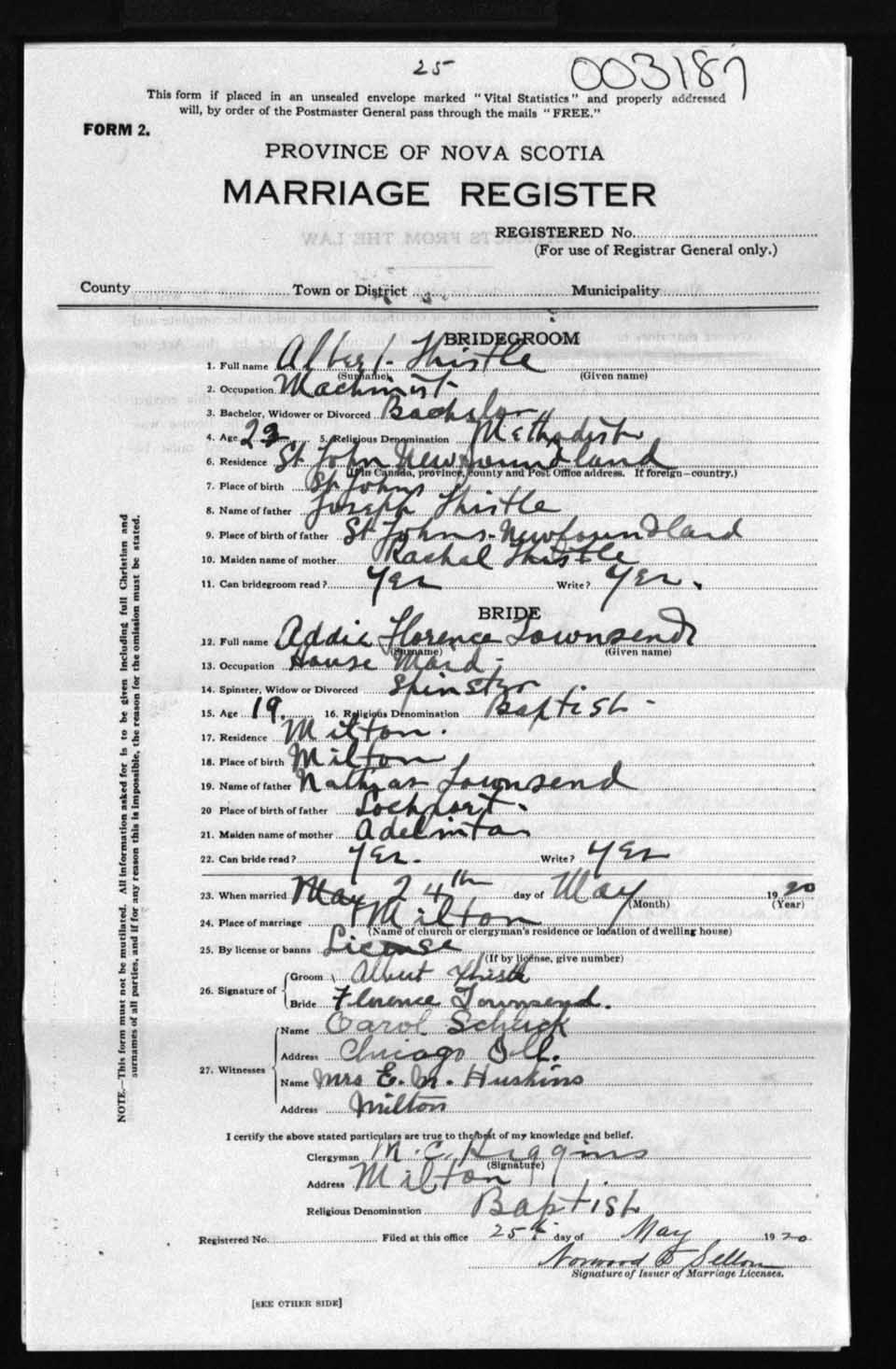 Registration: Year: 1920 number: 3187