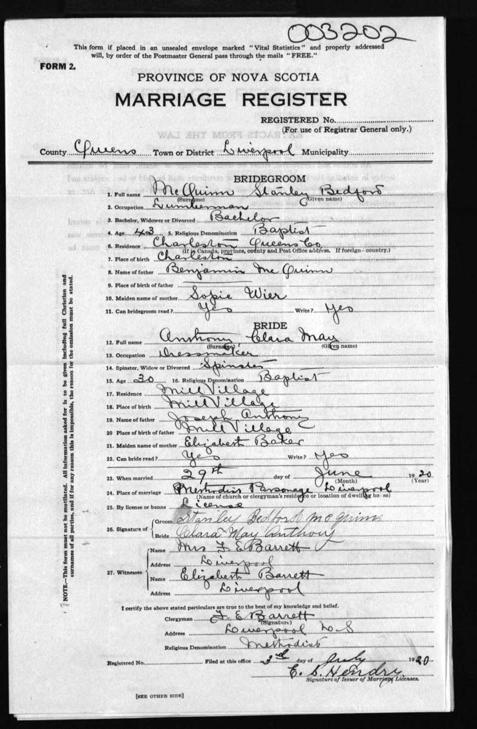Registration: Year: 1920 number: 3202