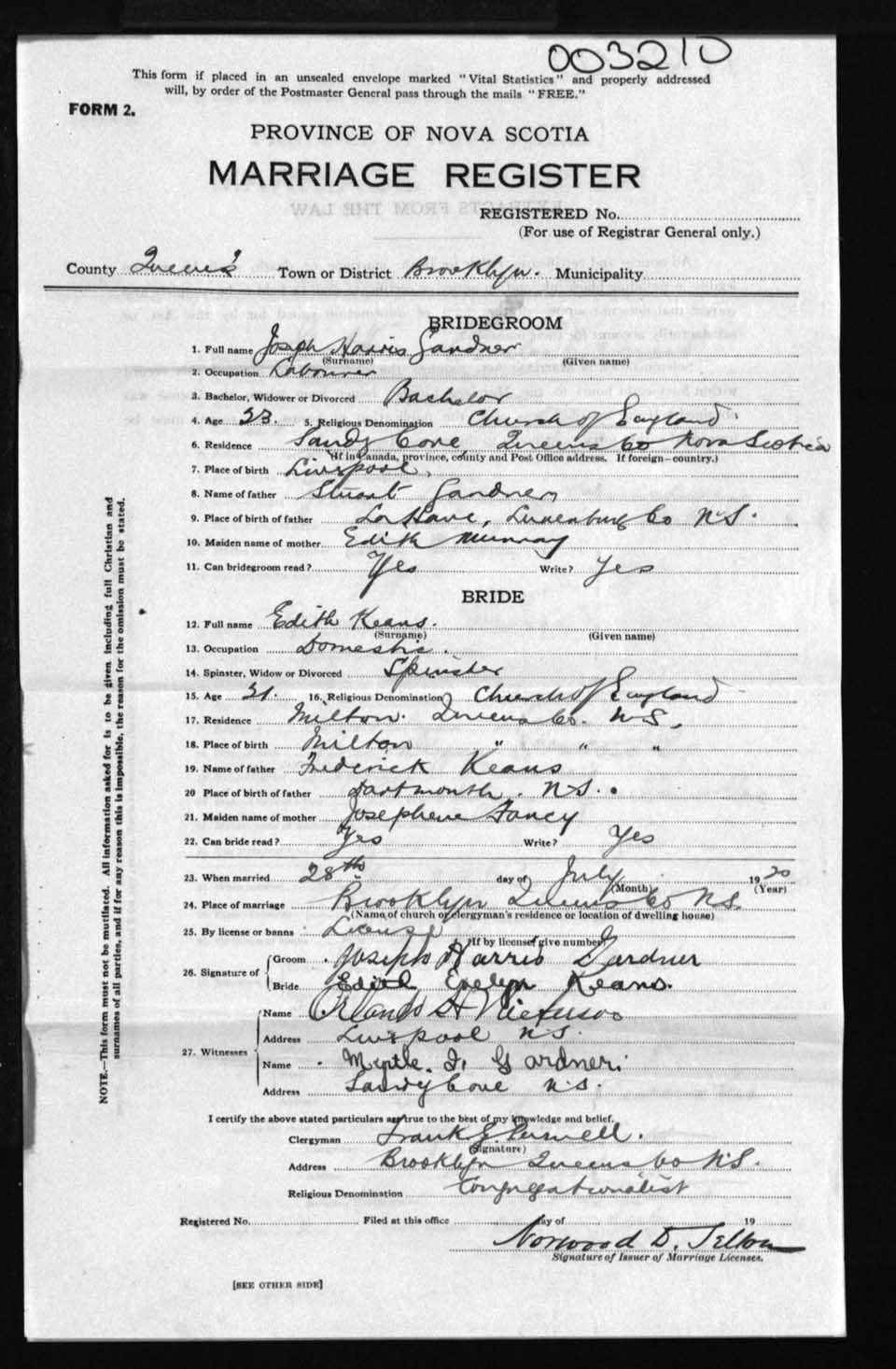 Registration: Year: 1920 number: 3210