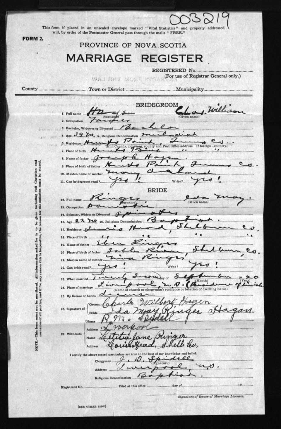 Registration: Year: 1920 number: 3219