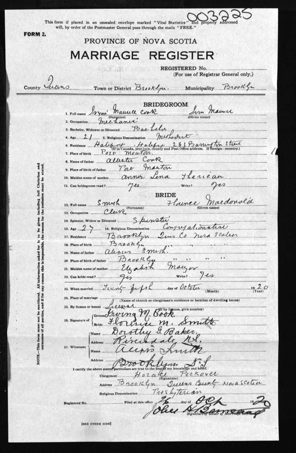 Registration: Year: 1920 number: 3225