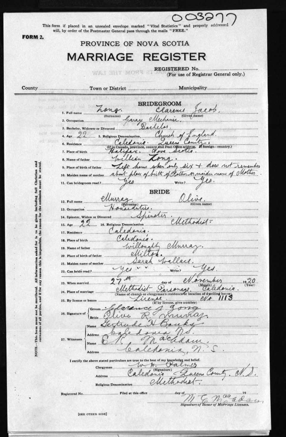 Registration: Year: 1920 number: 3277