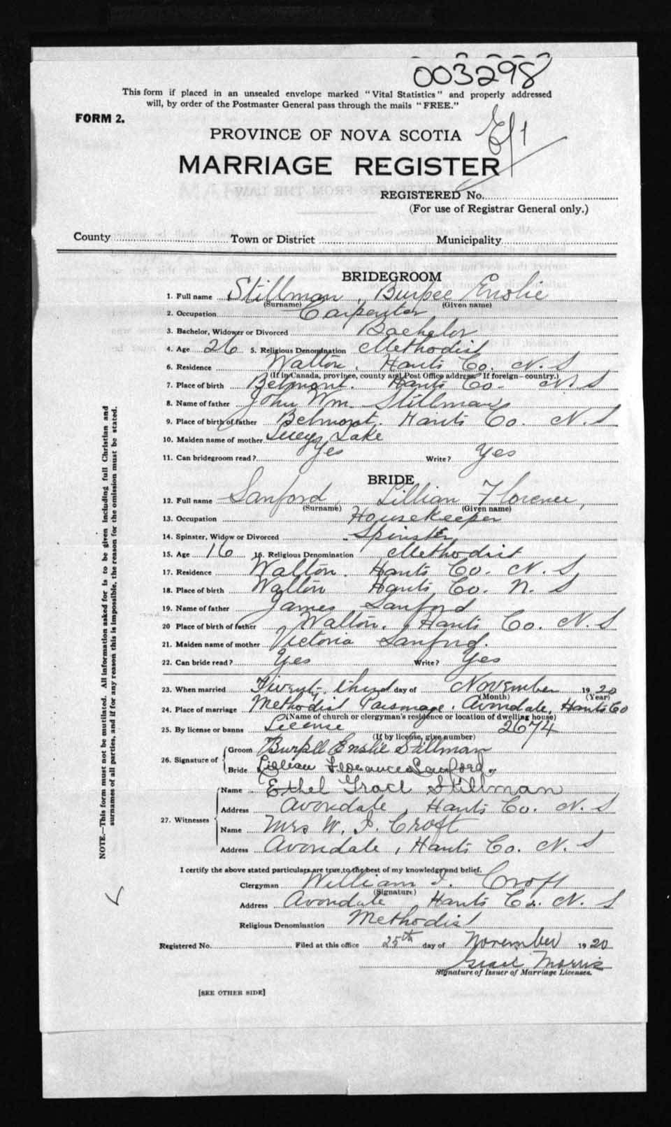 Registration: Year: 1920 number: 3298