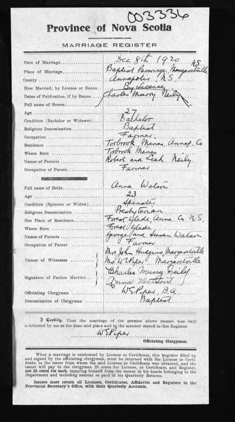 Registration: Year: 1920 number: 3336