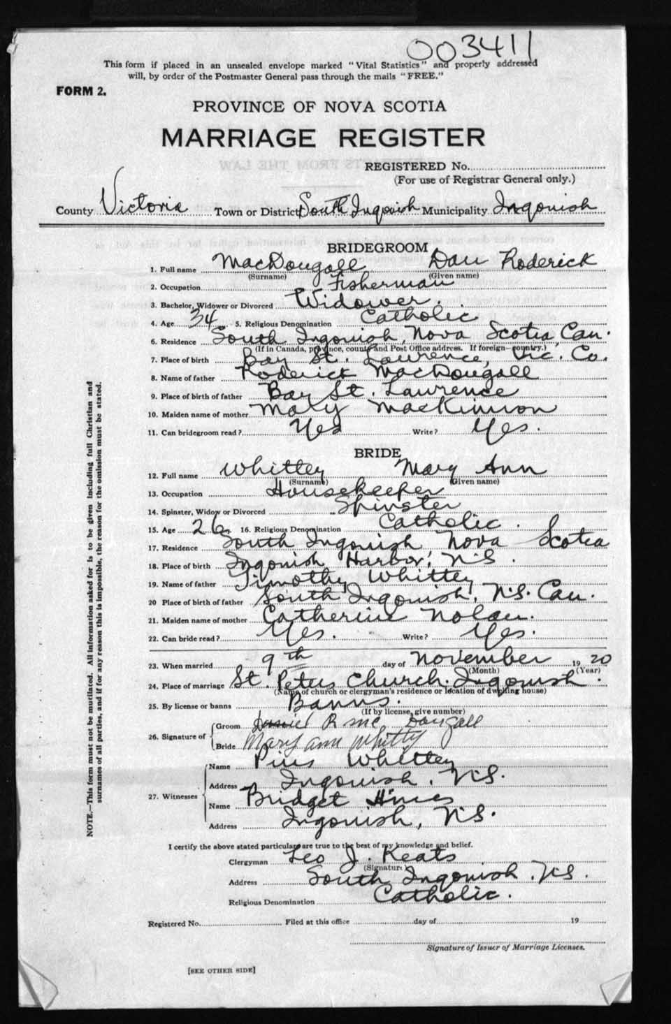 Registration: Year: 1920 number: 3411