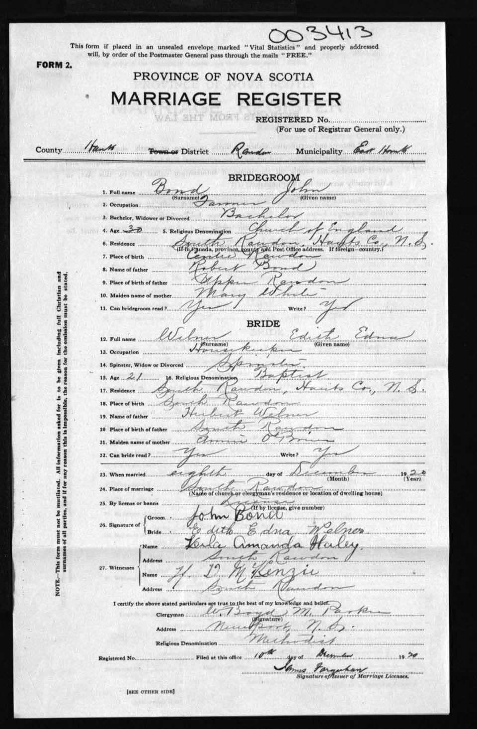 Registration: Year: 1920 number: 3413