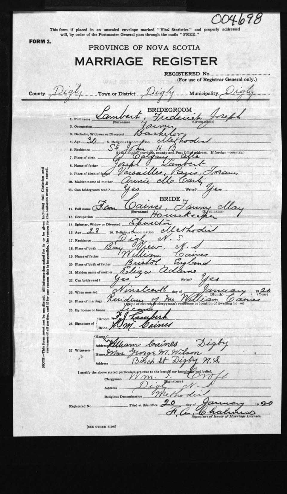 Registration: Year: 1920 number: 4698