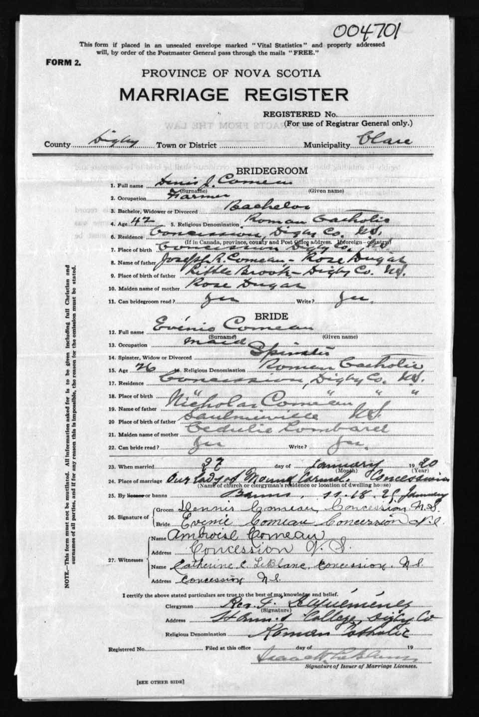 Registration: Year: 1920 number: 4701
